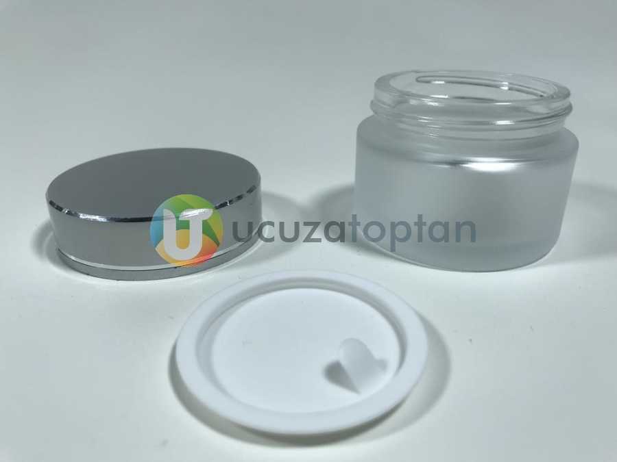 Gümüş Renk Kapaklı Cam Kavanoz 30 cc Krem Şişesi